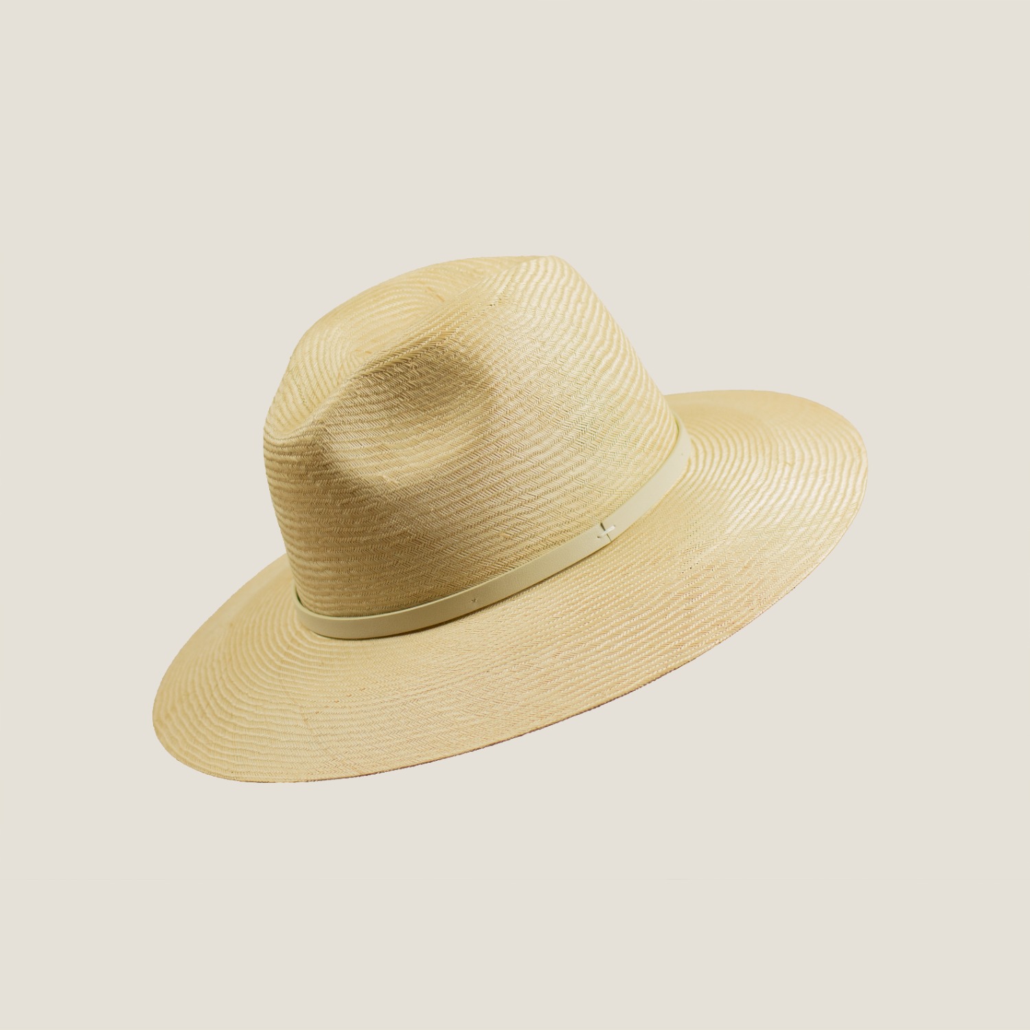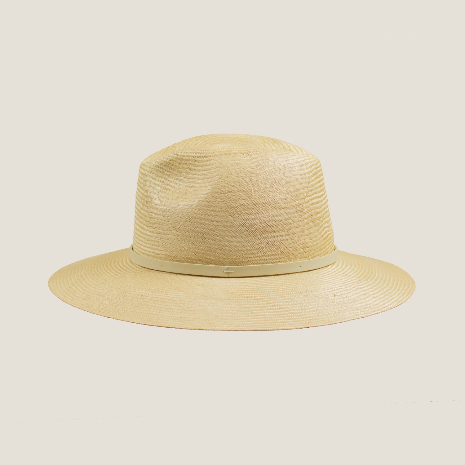 Su diseño se completa con una cinta fina en tono piel, discreta y armoniosa, que añade un toque de distinción sin restar protagonismo a la belleza natural del material. Un sombrero elegante, versátil y refinado, pensado para quienes valoran la calidad y el detalle.